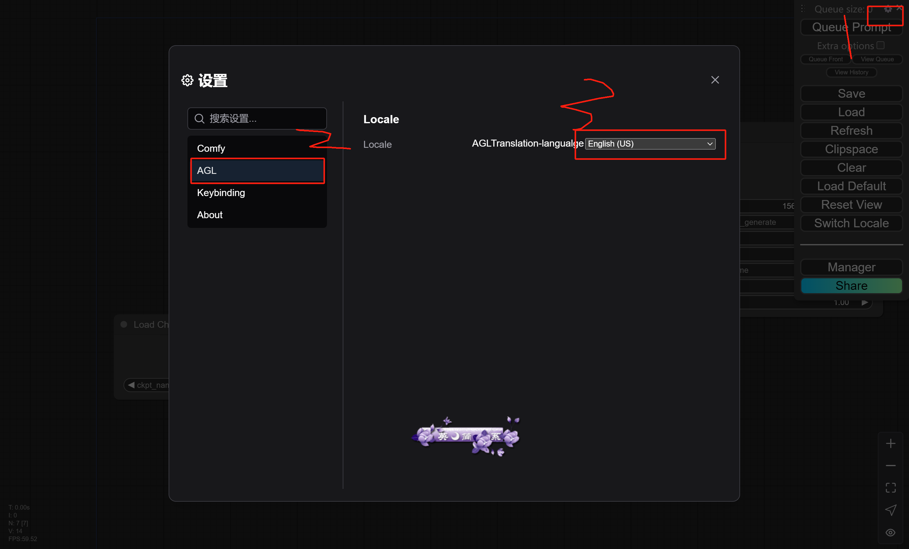 选择设置-AGL,改成中文,如果没有中文选项,重新在第二步看一下是否正确下载了语言包
