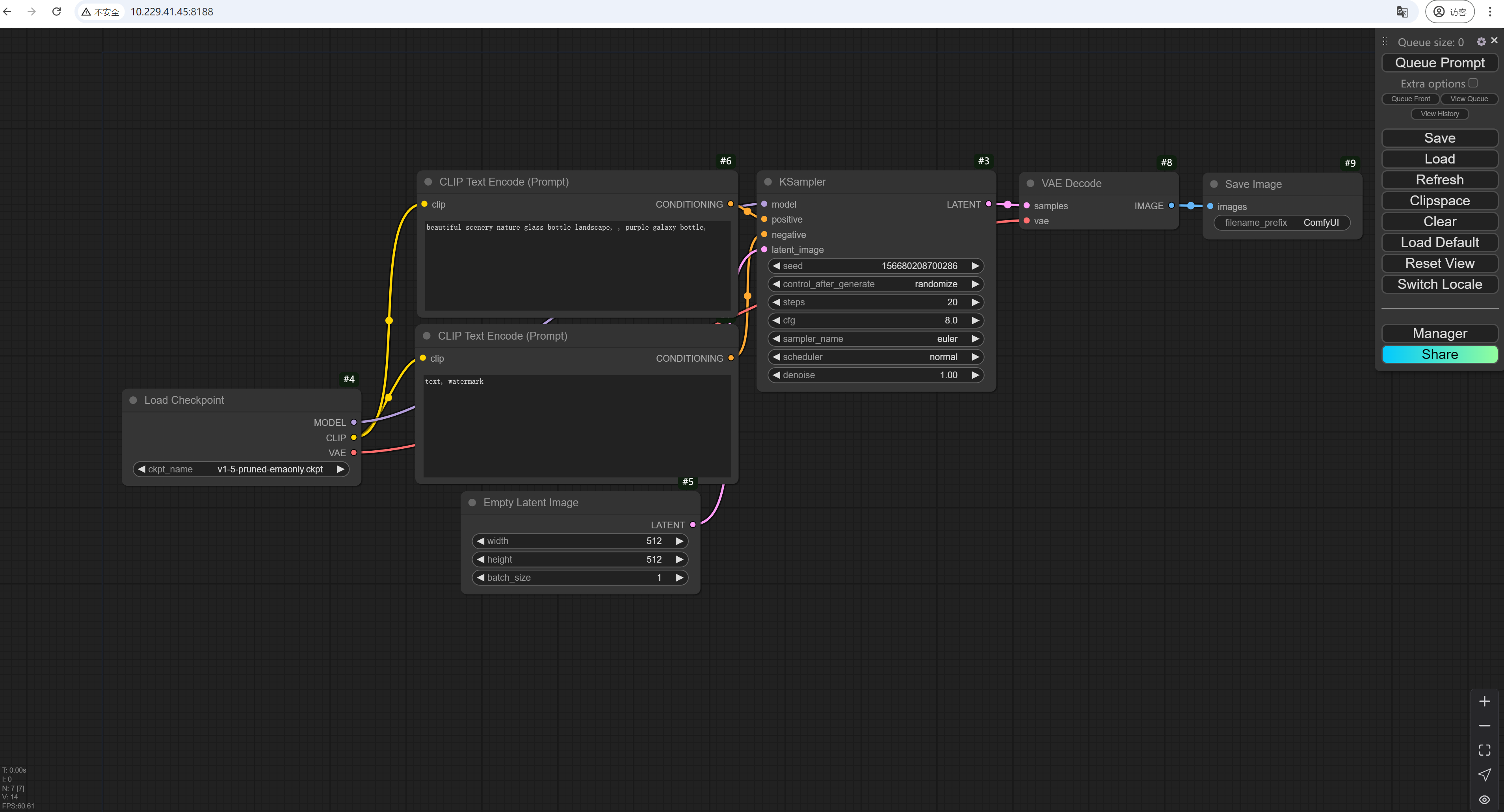 打开浏览器,在网页中输入自己的IP:8188, 比如我的IP是10.229.41.48,则输入: