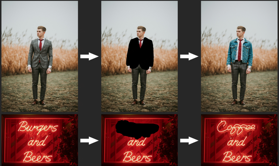 最先进的修复和图像处理模型,在给定文本描述和二进制掩码的情况下,支持编辑和扩展真实和生成的图像。比如可以支持掩码修复。