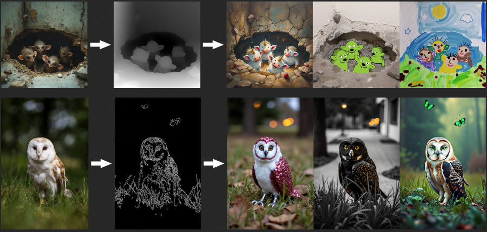 经过训练的模型,可以根据从输入图像和文本提示中提取的边缘信息和深度信息结构,重新绘制。