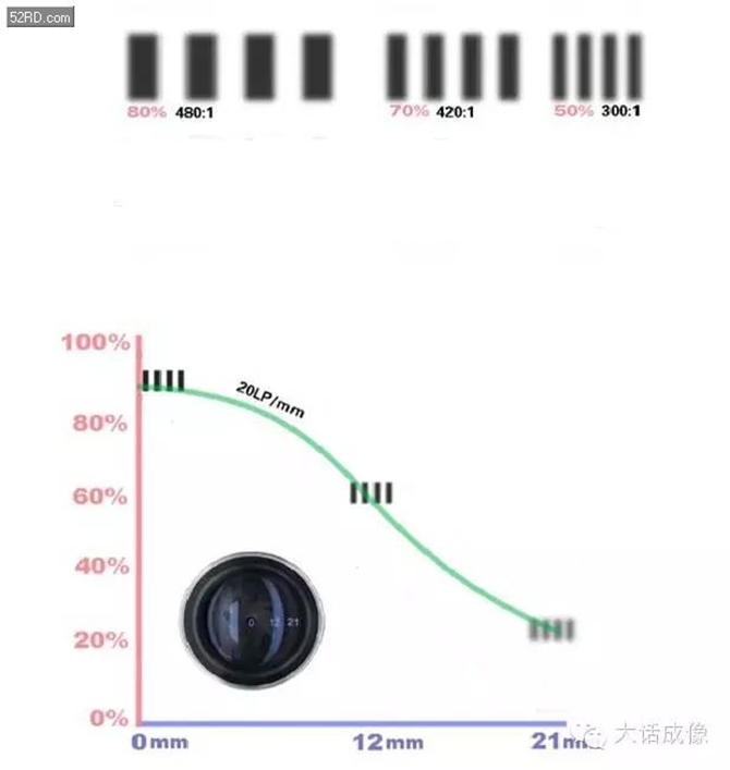 MTF是Modulation Transfer Function的英文简称,中文为调制传递函数。是指调制度随空间频率变化的函数称为调制度传递函数。个传递函数最开始是为了说明镜头的能力。在各个摄像头镜头中经常采用MTF描述镜头的MTF曲线,表明镜头的能力。这些曲线是通过理想的测试环境下尽量减少其它系统对镜头的解析力的衰减的情况下测试得出的。但是其实MTF也可以涵盖对整个成像系统的解析力评价。在这里咱们就不多讨论这个问题了,如果有兴趣可以开另外一篇文章讨论。