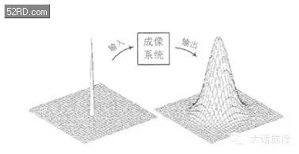 点扩展函数PSF(Point Spread Function)、线扩展函数LSF(LineSpread Function)和边缘扩展函数ESF(Edge Spread Function)是SFR 计算中的几个重要的概念。点扩展函数PSF是点光源成像后的亮度分布函数,如下图所示,用PSF(X,Y)表示。点扩展函数是中心圆对称的,通常以沿x轴的亮度分布PSF(X,Y)作为成像系统的点扩展函数。