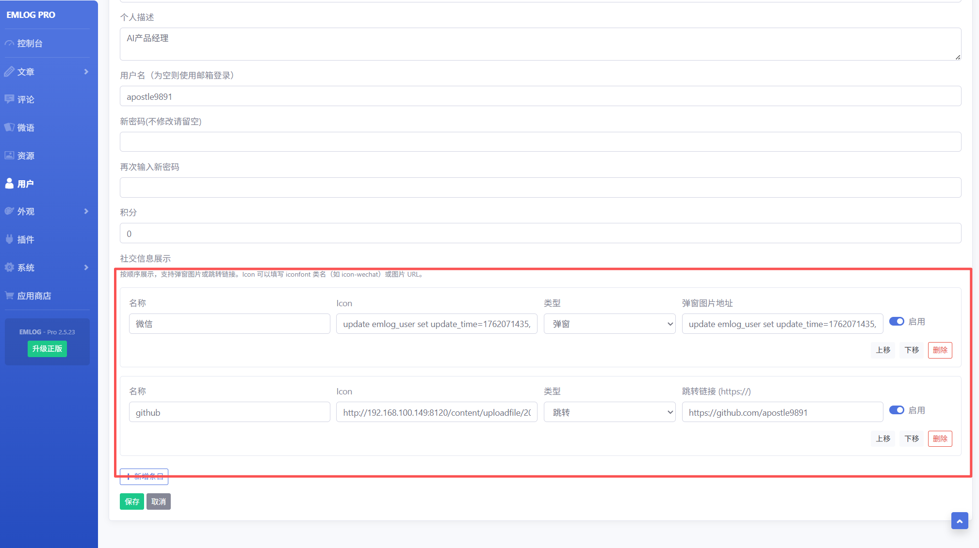 更新最新的github代码,因为数据库里没有微信等信息,需要更新数据库信息。