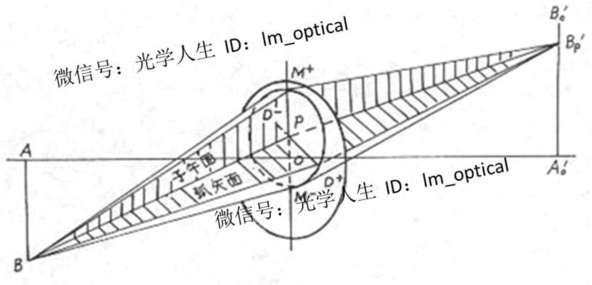轴外物点发出的通过系统的所有光线在像空间的聚焦情况比轴上点复杂的多。为简化问题,同时又能够定量地描述这些光线的弥散程度,我们从整个入射光束中取两个互相垂直的平面光束,用这两个平面光束的结构近似地代表整个光束的结构。这两个平面一个称为子午面(由物点和光轴构成的平面)另一个称为弧矢面(过主光线与子午面垂直的平面)。用来描述这两个平面光束结构的几何参数分别称为子午像差和弧矢像差。